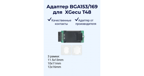 Поддержка корпусов BGA153/BGA169Работает только на программаторе XGecu T48 (TL866-3G)Это специальный..