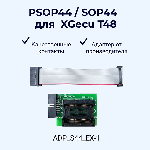 Адаптер используется для флэш памяти в корпусе PSOP44 / SOP44 / SOIC44 ICS с программатором T48 (TL8..