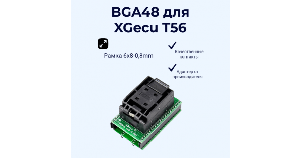 Адаптер BGA48 6x8-0,8mm для программатора XGecu T56.Используется только с программатором XGecu T56. ..
